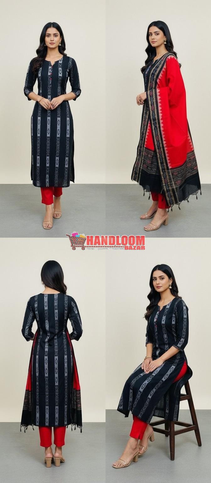 Bring home the timeless elegance of Odisha’s rich Sambalpuri handloom heritage with this Sambalpuri Handloom Cotton Ikkat Unstitched Salwar Suit Dress Material with Dupatta, exclusively available at Handloom Bazar.