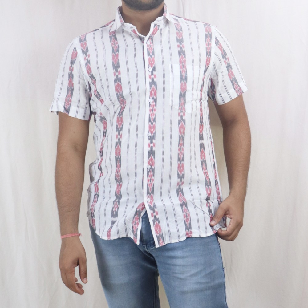 With bold ikat patterns and vibrant colors, our Sambalpuri half shirts bring an authentic touch to modern casual wear. Handwoven in breathable cotton, these shirts offer all-day comfort, making them ideal for warm weather or casual outings. Pair them with jeans or traditional trousers for a stylish, effortless look that blends tradition with contemporary flair..